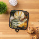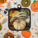 Safely handle baking trays, cookie sheets and muffin tins from the oven with this pot holder with black trim that features a still life photo image of various colours and varieties of pumpkins and squash. Perfect for the autumn season, Halloween and Thanksgiving! Select your pot holder backing style.