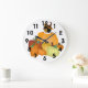 Calico cat and pumpkins wall clock