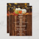 A festive fall wedding menu featuring colorful pumpkins and autumn leaves on a sparkling lights and rustic wood background.