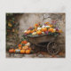 Pumpkins, Flowers, and Leaves in a Wheelbarrow Postcard