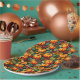 An autumn theme that's perfect for Thanksgiving! Pumpkins are nestled among green and brown leaves, and red berries in a beautiful harvest scene.