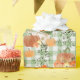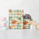 A pretty wrapping paper of green and white check covered in orange pumpkins
