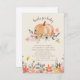 "Pacifiers and pumpkins" themed baby shower "books for baby" book request featuring illustration of orange pumpkin, pacifiers, botanical and floral designs.