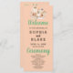 Turning to the back of the program, you'll find a carefully curated list of the wedding party presented in classic black and grey. The predominantly simple block font ensures clarity and sophistication, while the words "Welcome," "Ceremony," and "Wedding Party" take centre stage in a beautiful decorative script font. These scripted elements add a touch of whimsy and personalisation to the design, creating a program that serves as a cherished keepsake for both you and your guests.