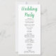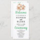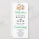 Turning to the back of the program, a carefully curated list of the wedding party is presented in classic black and grey, ensuring clarity and a touch of sophistication. The predominantly simple block font maintains readability, while the words "Welcome," "Ceremony," and "Wedding Party" take centre stage in a pretty decorative script font. These scripted elements add a touch of whimsy and personalised charm to the design, creating a program that serves as a cherished keepsake for both you and your guests.