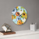 Pumpkins, sunflowers, watercolor illustration large clock