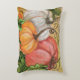 The cushion is small to medium sized. It can be washed. It is well constructed. The material used is pleasant and feels decent quality. It has a very slight plush feel which is good. It is well labelled and its care clearly stated. Theres nothing not to like about it. All in all a good item. The deduction of one star overall is due to long delays in delivery to the UK. It's not clear if this was due to Zazzle or somewhere else in the chain as I did not receive status updates of dispatch or progress. I cannot comment anymore on that other than to say that was our experience but it may not be the same for you. The printing was surprisingly close to what we were expecting. Its an art piece and on material so its hard to assess the precision of printing but it seems close to the original. The soft lines are reproductions of the original. The colour is a fair reflection of the painting. This was printed in the US and it looks like US quality. No issues.