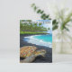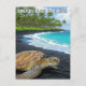 Punaluʻu Black Sand Beach lies along the Big Island’s rugged southeastern coast, where finely ground basalt sand forms a deep, charcoal shoreline against the blue Pacific. Coconut palms lean toward the water, and lava rock frames the beach, creating a striking contrast of textures and colors. The sound of waves rolling over black sand gives the area a calm, rhythmic atmosphere shaped by volcanic forces.