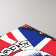 Funny punk guineafowl bird collage wearing a mohican mowhawk hairstyle with and an anarchy text with a red white and blue British union jack and a royal Stewart Scottish tartan background. For matching guinea fowl products and more fun animal characters visit the VINTAGEPRINTSORE.