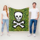 Punk-inspired Edgy Green Leopard Print Jolly Roger Fleece Blanket