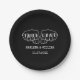 These minimalist paper plates with punk rock vibes are perfect for anyone who prefers weddings without a lot of flowers and fancy stuff. They have a simple black and white colour scheme with tattooed fingers at the top spelling out "TRUE LOVE" and the couple's names and wedding date below in a typewriter style font.