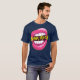 I give wanted to give this a 4 instead of a 5 because these Basic DARK T0shirts run unexpectedly SLIM or Narrow. Which is great if you do not have a potbelly, but I have a paunch. It isn't the shirt's fault that I've got a beer belly. The design and shirt itself is a quality cotton shirt. The color is more of a deep purple, but still a very pretty color. The Basic DARK T-shirts run a bit SLIMMER than the Basic Ts. The neck is a fraction narrower (or seems to be narrower) also. I'm a paunchy middle-aged woman and my neck is 12 inches (31cm) thick and the neckline fell about the same as in the photo of the man, and I had the desire to tug it a bit. So if you're a thick necked man or like loose shirts, be aware these are slimmer shirts. Once I get rid of my lockdown paunch it'll look great. The shirt washed well in cold water with no apparent bleeding. We don't have a dryer, so it hung dry. Did not shrink. Love the colors and the design. The design looks smaller on my shirt than it does on the model on-line. But still, it looks good on the shirt. The printing looks as it does on the model, just the size seems fractionally smaller. Washed garment in cold water, hung dry and design appeared unaffected.