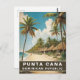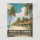 "punta cana dominican republic", "palm trees beach", "relaxing holiday travel", vacation, "vintage retro travel poster", "golden sandy beaches", "tropical clear blue water", "calm ocean sea", "blue sky illustration graphic", "painting souvenir postcard"