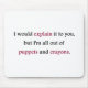 Multiple Products with the humourous comment "I would explain it to you, but I'm all out of puppets and crayons." on them.