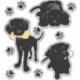Adorable Black Labrador retriever puppy and paw prints stickers