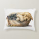 Cute watercolor golden retriever puppy and grey kitten sleeping in a basket on white background.