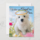 The design depicts a bichon puppy in a meadow looking angelic. The puppy is my boy when he was young.