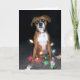 Boxer pup tangled in lights on Christmas card