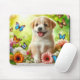 In a vibrant garden filled with colourful blooms, a cheerful puppy sits at the centre, radiating pure joy. His bright eyes sparkle with happiness as he flashes a heartwarming smile.