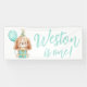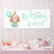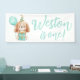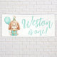 Decorate your Dog themed birthday party with this adorable puppy dog banner featuring a cute, watercolor dog holding a present and balloon while wearing a birthday party hat. It's perfect for the little boy who loves dogs! Easily customise the wording with the online editor.
