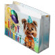 Cute Terrier in Party Hat with Horn, Celebrates a Birthday.