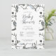 Cute and playful puppy dog sketch baby shower invitation in a simple gray, white, and blue palette. Great for gender neutral baby showers, pet themed showers, and baby boy celebrations.