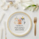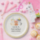 This cute "calling all pawty animals" birthday paper plate features three puppy dogs with party hats on a light beige background framed by a glitter gold border. Personalise for your needs.You can find more matching products at my store.