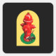 Puppy Dog Peeing On Fire Hydrant Retro Square Sticker