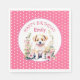 Cute puppy dog sitting in pink flowers personalised little girl's pink polka dot birthday party paper plates.