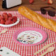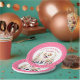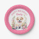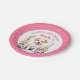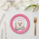 Cute puppy dog sitting in pink flowers personalised little girl's pink polka dot birthday party paper plates.