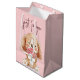 Watercolor puppy dog with pink flower on blush pink background with text.