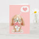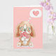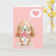Watercolor puppy dog with pink flowers on pink background with a thought bubble and pink heart.