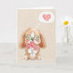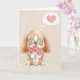 Watercolor puppy dog with pink flowers on soft burlap textured background with a thought bubble and pink heart.
