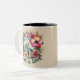 Puppy & Floral 70s Retro "Peace & Love" Peace Sign Two-Tone Coffee Mug