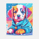 A colourful and cute art design of a puppy wearing a blue coat (This Design Made With AI). Place Order Today and Embrace the Joy of Shopping!