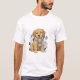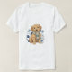 Charming golden retriever puppy in a knit blue scarf surrounded by blue florals. Warm, pastel aesthetic perfect for kidswear, accessories, or décor with a playful, cozy vibe.