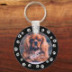 Cute dog lover's keychain with puppy photo and dog paw prints frame. White paw prints on the black background. Click Personalise This Template to replace puppy photo with your own Instagram puppy photo and create your own unique one of a kind design. A lovely personalised gift for puppy lovers! If you want to edit more you can replace some paw prints with custom text or puppy name.
