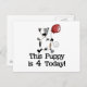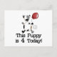 A cute puppy 4th Birthday design on Puppy 4th birthday T-shirts, mugs, cards, stickers, and more with puppy, red birthday balloon, and text that reads "This Puppy is 4 Today!".