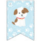 Puppy birthday party bunting flags. Happy Birthday with paw prints and cute puppies! in blue