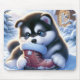 Puppy Playing With a Snow-Covered Winter Boot Mouse Mat