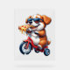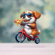 puppy riding a bike eating pizza acrylic sign
