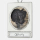 Puppy`s First Christmas Cute Script Photo Ornament. Insert your dog or any other pet`s photo into the template and personalise the ornament with your pet`s name and year of birth.