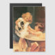 This beautiful antique advertisement from the 1800s shows a little girl handing over a puppy to a little boy in the tub. It's puppy's first bath. The little boy is reaching for the doggie, and pretty soon, I'm sure you'll see water everywhere. It's dog bath time! These little Victorian children are treating bath time seriously! Sharing a bath with the puppy is part of the fun, and giggles will happen soon. The children and puppy illustration is vivid, warm, and wonderful.