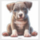 A depiction of a charming pitbull puppy with expressive blue eyes, sitting calmly and showing curiosity. The artwork features realistic details, great for portraying innocence, cuteness, and animal companionship.