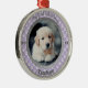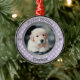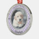 Celebrate your puppy's first Christmas with this unique Christmas decoration. With a purple paw print background and silver glittery frame, just personalise with your dog's name, photo and year of birth.