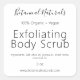 Face, hand and body scrubs are extremely easy and cost effective to make and can be quite profitable to sell. They can be gentle or they can be a little more abrasive depending on what part of the body it is for. This label is for someone who has made a pure, natural product for customers who are chemical conscious, and who like to use vegan, organic and environmentally responsible products on their skin. This label is pure and uncomplicated like your products. To edit simply click "personalise".
