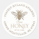 This fully editable honey label has taupe text with a central bee illustration in taupe with a black drop shadow. Add in your apiary name, location, and honey net weight. Common honey net weight conversions: 8oz (227g), 12oz (340g), 16oz (454g), 32oz (907g), 5lb (2.27kg). You can even specify your varietal (wildflower, clover, etc.) or processing method (raw, filtered, etc.)