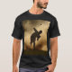 I give wanted to give this a 4 instead of a 5 because these Basic DARK T0shirts run unexpectedly SLIM or Narrow. Which is great if you do not have a potbelly, but I have a paunch. It isn't the shirt's fault that I've got a beer belly. The design and shirt itself is a quality cotton shirt. The color is more of a deep purple, but still a very pretty color. The Basic DARK T-shirts run a bit SLIMMER than the Basic Ts. The neck is a fraction narrower (or seems to be narrower) also. I'm a paunchy middle-aged woman and my neck is 12 inches (31cm) thick and the neckline fell about the same as in the photo of the man, and I had the desire to tug it a bit. So if you're a thick necked man or like loose shirts, be aware these are slimmer shirts. Once I get rid of my lockdown paunch it'll look great. The shirt washed well in cold water with no apparent bleeding. We don't have a dryer, so it hung dry. Did not shrink. Love the colors and the design. The design looks smaller on my shirt than it does on the model on-line. But still, it looks good on the shirt. The printing looks as it does on the model, just the size seems fractionally smaller. Washed garment in cold water, hung dry and design appeared unaffected.