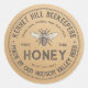 Vintage French honey bee illustration on a brown kraft paper background. Personalise with your apiary name, product (honey), net weight, and location. Additional space for contact info or “unfiltered, local, hand bottled, US grade A or B, etc. Not sure of your honey net weight? There's a list of common conversions (grams and ounces) in the form field when you customise your label. Most honey is Grade A. Grade A is clear (heated and filtered) and free of ‘defects'. Grade B honey is raw, unheated and unfiltered (it is usually strained and may contain a small amount of very fine particles, pollen grains, and small air bubbles.) Grade C meets the minimum standards set by the USDA and anything below this standard is classed as substandard.