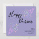 Purim Purple Neon Party Hat Mishloach Manot Name Holiday Card